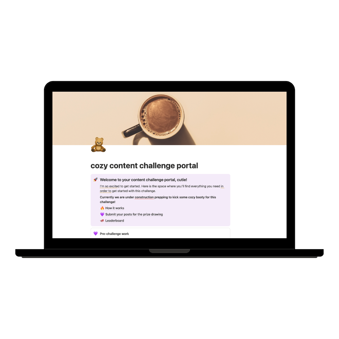 → Get access to our cozy content challenge portal with a leaderboard, challenge prompts, and pre-work: basically everything you need to successfully complete the challenge!