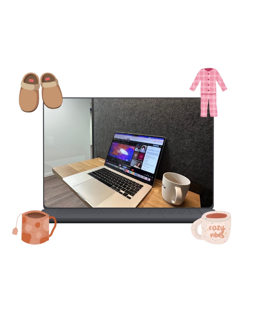 Coworking starter pack including focus candle, cozy blanket, slippers, and laptop accessories