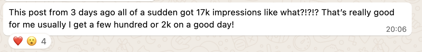 → Daily prompts, hooks and post structure straight to your inbox that have gained me and my clients over 100,000 views and close 5-figure monthly deals