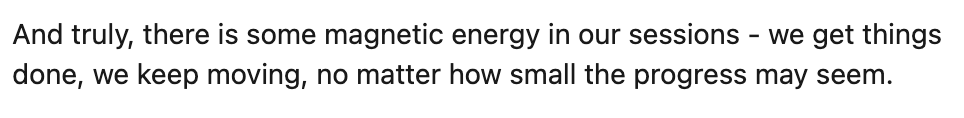 Coworking as a group on Monday’s, and join coworking cuties on Tuesday, Wednesday, Thursday at 9am ET (3pm CET) for 1 hour of focus time,